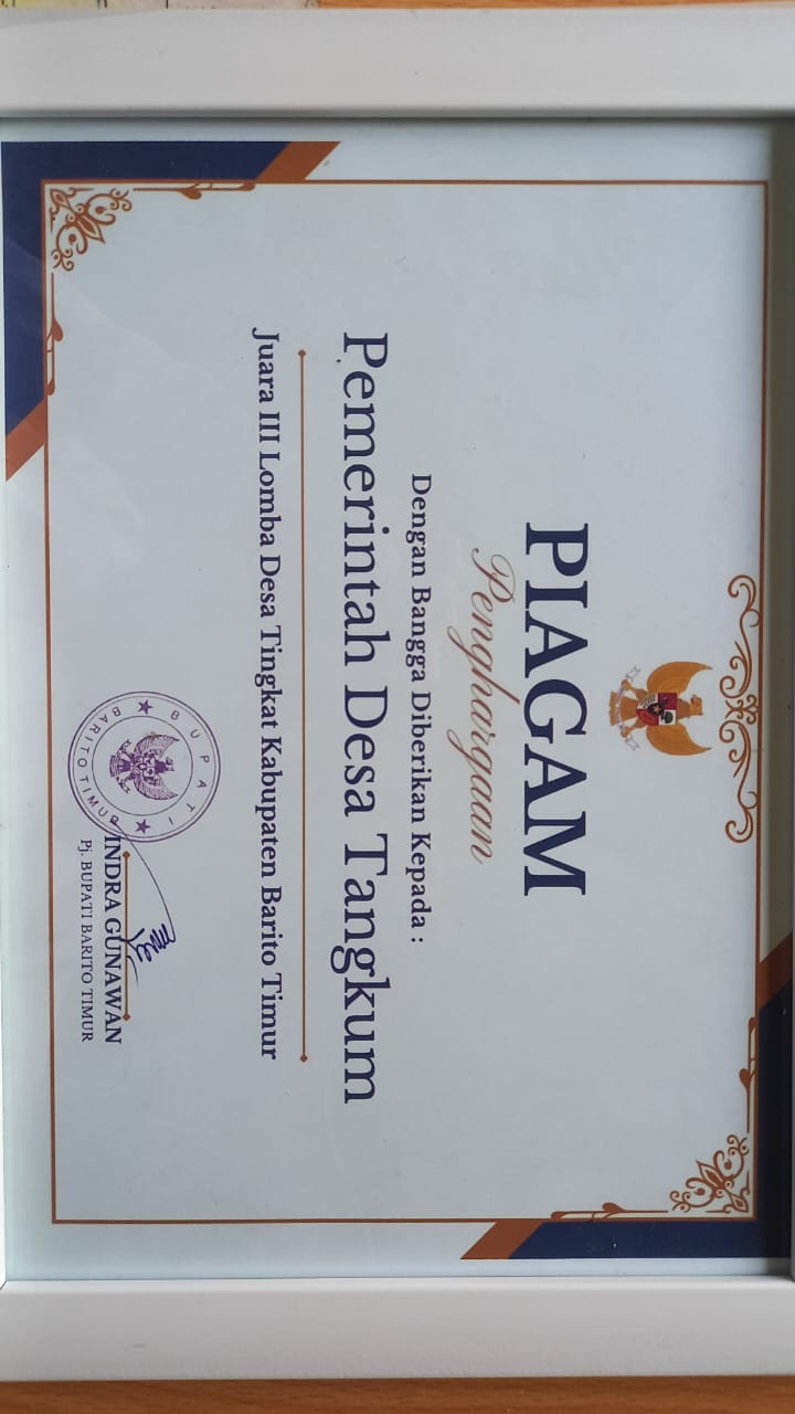 - Piagam Penghargaan juara III Lomba Desa Tingkat Kabupaten Barito Timur